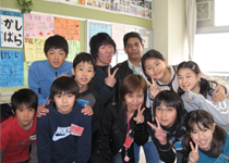 | 近くの小学校を訪問して、日本の小学生と触れ合います。初めて外国人と交流する小学生がほとんどで、最初は緊張気味ですが、だんだんと積極的に話しかけてくれ、楽しい時間を過ごします。給食も食べられますよ。 |